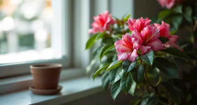 Pour que votre azalée d'intérieur s'épanouisse, il est important de la placer dans un endroit approprié. Elle préfère une lumière vive mais indirecte, donc une fenêtre orientée au nord ou à l'est est idéale. Assurez-vous que la température de la pièce se situe entre 10 et 18 °C, en évitant les sources de chaleur telles que les radiateurs qui assèchent l'air. L'azalée aime l'humidité, mais craint les courants d'air qui peuvent stresser la plante. Une véranda ou une pièce fraîche et bien aérée serait parfaite.