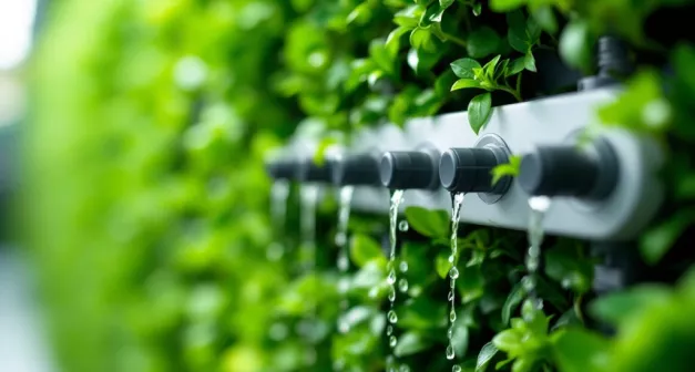 Un bon système d'irrigation est indispensable pour maintenir vos plantes en bonne santé. Installez un système d'arrosage goutte-à-goutte pour une distribution uniforme de l'eau, ce qui est particulièrement important pour un mur d'une surface de 6 m² ou plus. Utilisez des tuyaux micro-perforés placés en haut du mur pour que l'eau descende par gravité.Pour un mur de cette taille, un réservoir de 100 à 200 litres devrait suffire pour assurer une irrigation continue sans avoir à remplir trop souvent. Connectez le système à un programmateur automatique pour ajuster la fréquence et la durée des arrosages en fonction des saisons : plus fréquent en été et moins en hiver. Pour économiser l'eau, intégrez un capteur d'humidité qui déclenchera l'arrosage uniquement lorsque le sol est trop sec.