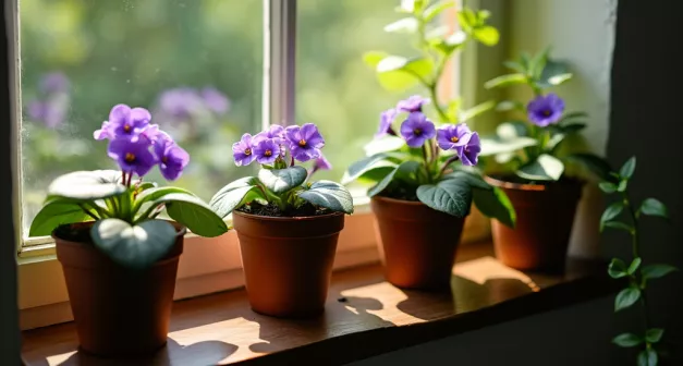 Les violettes africaines nécessitent un éclairage adéquat pour prospérer et fleurir abondamment. Placez-les à environ 1 mètre d'une fenêtre orientée sud ou ouest, où elles recevront une lumière indirecte brillante. La lumière directe du soleil peut brûler les feuilles délicates, il est donc préférable de filtrer la lumière avec un rideau léger si nécessaire. Si l'éclairage naturel n'est pas suffisant, surtout pendant les mois d'hiver, utilisez des lampes fluorescentes ou LED, positionnées à environ 30 cm au-dessus des plantes. Les violettes africaines ont besoin d'environ 12 à 16 heures de lumière par jour pour maintenir une floraison continue. Tournez régulièrement les pots d'un quart de tour pour éviter que les plantes ne s'inclinent vers la lumière et pour assurer une croissance uniforme.