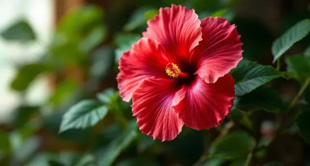 Pour que votre hibiscus prospère à l'intérieur, il est indispensable de choisir un emplacement qui lui offre une lumière vive mais sans exposition directe au soleil. Orientez la plante vers une fenêtre à l'est ou à l'ouest, car elle bénéficiera d'une lumière intense le matin ou l'après-midi, évitant ainsi les rayons brûlants de midi. Si la lumière naturelle fait défaut, l'ajout d'une lampe de croissance peut être bénéfique pour maintenir un niveau de luminosité adéquat. Placez la plante à environ 50 cm de la fenêtre pour prévenir les brûlures dues à une lumière trop intense. La température ambiante doit être maintenue entre 18 et 24°C pour favoriser une croissance optimale. Éloignez l'hibiscus des courants d'air et des sources de chaleur directe comme les radiateurs, car ils peuvent provoquer un stress thermique qui nuit à la plante. Assurez-vous que l'emplacement choisi permet une bonne circulation d'air, ce qui aidera à prévenir les maladies fongiques.