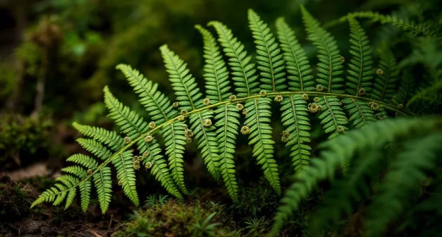 Les sores sont les structures reproductrices des fougères, situées principalement sur la face inférieure des frondes. Ces amas de sporanges apparaissent souvent sous forme de petits cercles ou de lignes allongées, chacune mesurant entre 1 à 3 millimètres de diamètre. Pour les identifier, examinez attentivement le dessous des frondes à l'aide d'une loupe grossissante d'au moins 10x. Vous remarquerez que les sores sont organisés de manière régulière et peuvent être recouverts d'une indusie, une membrane fine qui protège les spores en développement. Cette indusie peut varier en couleur, allant du brun au jaune, selon l'espèce de fougère. En pleine saison de croissance, généralement au printemps et en été, les spores peuvent être observées se libérant des sporanges par temps sec et venteux.