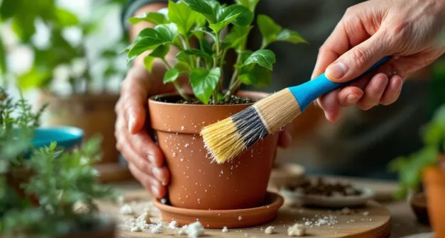 Le rempotage dans un terreau frais et stérile est une étape clé pour prévenir la réapparition des champignons. Commencez par retirer délicatement la plante de son pot actuel. Pour ce faire, inclinez le pot et tapotez doucement les côtés pour détacher le terreau. Une fois la plante retirée, secouez doucement la motte pour enlever le maximum d'ancien terreau possible, mais faites attention à ne pas endommager les racines. Préparez un nouveau pot propre, de préférence avec des trous de drainage pour éviter l'accumulation d'eau. Remplissez le fond du pot avec une couche de gravier ou de billes d'argile pour améliorer le drainage, puis ajoutez du terreau frais et stérile, spécialement formulé pour les plantes d'intérieur. Placez la plante au centre du pot et remplissez autour des racines avec plus de terreau, en pressant légèrement pour éliminer les poches d'air. Arrosez légèrement pour tasser le terreau et assurer un bon contact avec les racines. Ce processus aide à éliminer les spores fongiques résiduelles qui pourraient être présentes dans l'ancien substrat.