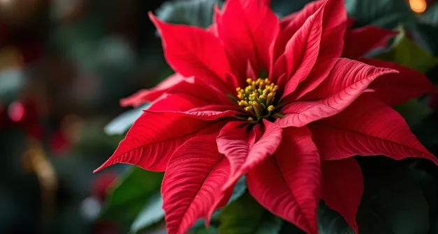 Intégrez le poinsettia dans vos décorations de Noël en l'associant à d'autres plantes symboliques comme le houx ou le gui.