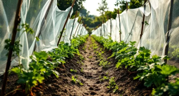 Les filets anti-insectes sont un excellent moyen de protéger vos cultures de carottes des mouches. Pour une protection optimale, installez des filets dès le semis et maintenez-les jusqu'à la récolte. Optez pour des filets à mailles fines, d'environ 0,8 à 1 mm, pour empêcher les mouches d'atteindre les plants. Les filets doivent être bien tendus et leurs bords ancrés ou légèrement enterrés dans le sol pour éviter que les mouches, qui volent souvent à faible hauteur, ne passent en dessous. Utilisez des arceaux pour soutenir les filets, ce qui permet de ne pas entraver la croissance des plantes. Inspectez régulièrement les filets pour détecter et réparer toute déchirure ou affaissement. Les filets peuvent également être utilisés en association avec d'autres méthodes, comme la plantation de plantes répulsives, pour renforcer la protection.