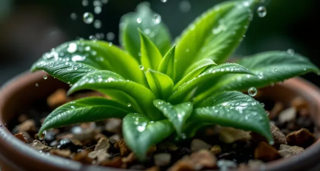 Pour éviter que le terreau ne se disperse lors de l'arrosage, il est important de choisir une méthode douce. Utilisez un arrosoir à long bec, qui permet un contrôle précis du débit d'eau, ou un pulvérisateur manuel pour une application encore plus délicate. Commencez par vaporiser légèrement la surface du terreau avec de l'eau à température ambiante, environ 20 à 22°C, afin de l'humidifier. Cette humidification préalable aide le terreau à absorber l'eau plus facilement et réduit le risque de déplacement du sol. Ensuite, arrosez lentement en versant l'eau sur les bords intérieurs du pot, ce qui permet à l'eau de s'infiltrer progressivement dans le terreau sans créer de trous ou de poches d'air. Continuez l'arrosage jusqu'à ce que l'eau commence à s'écouler par les trous de drainage, indiquant que le terreau est bien imbibé. Pour les plantes récemment rempotées, il est conseillé de vérifier l'humidité du terreau tous les deux à trois jours en enfonçant un doigt d'environ 3 cm dans le sol. Si le terreau est sec à ce niveau, il est temps d'arroser à nouveau.