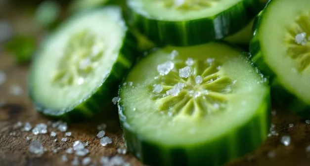 Pour atténuer davantage l'amertume, laissez les tranches de concombre dégorger avec une pincée de sel pendant 15 à 20 minutes. Cela extrait l'excès d'eau et rend le concombre plus doux.