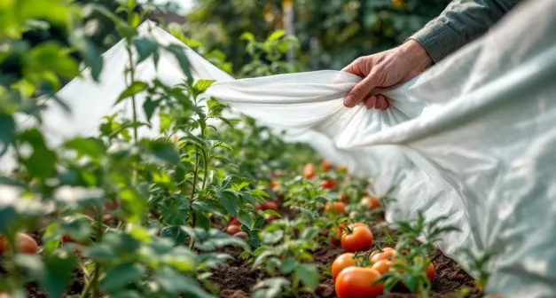L'installation d'un voile d'ombrage est une méthode très efficace pour protéger vos tomates de l'insolation. Un voile d'ombrage de 30 à 50 % est recommandé pour réduire l'intensité lumineuse tout en permettant une bonne photosynthèse. Pour le mettre en place, commencez par mesurer la zone à couvrir afin de choisir un voile de la bonne taille. Utilisez des piquets ou des arceaux pour installer le voile à une hauteur d'au moins 1 mètre au-dessus des plants, en vous assurant qu'il est bien tendu et ne touche pas les plantes. Cela évitera d'endommager le feuillage. Installez le voile dès que les températures commencent à dépasser régulièrement les 25°C, et retirez-le lorsque le soleil est moins intense en fin de journée pour permettre une bonne aération et éviter l'accumulation d'humidité. Pensez à vérifier régulièrement l'état du voile et à le remplacer s'il est usé ou endommagé.
