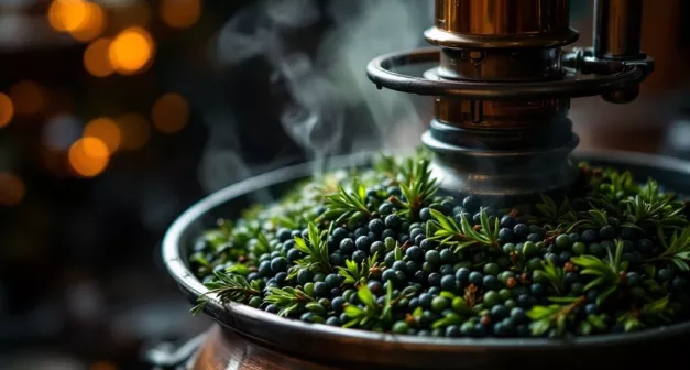 Pour commencer, sélectionnez environ 500 grammes de baies de genièvre bien mûres, de préférence cueillies à la main pour éviter de les endommager. Les baies doivent être d'un bleu profond, signe qu'elles ont atteint leur pleine maturité. Rincez-les à l'eau claire pour enlever toute saleté ou résidu. Étalez les baies sur un torchon propre et laissez-les sécher pendant au moins 24 heures dans un endroit sec et aéré, à l'abri de la lumière directe du soleil. Le séchage complet est important pour éviter que l'humidité résiduelle n'altère le processus de distillation. Une fois sèches, utilisez un pilon ou un moulin manuel pour concasser légèrement les baies. Le broyage doit être suffisant pour fendre les baies sans les réduire en poudre, ce qui pourrait compliquer l'extraction des huiles volatiles.