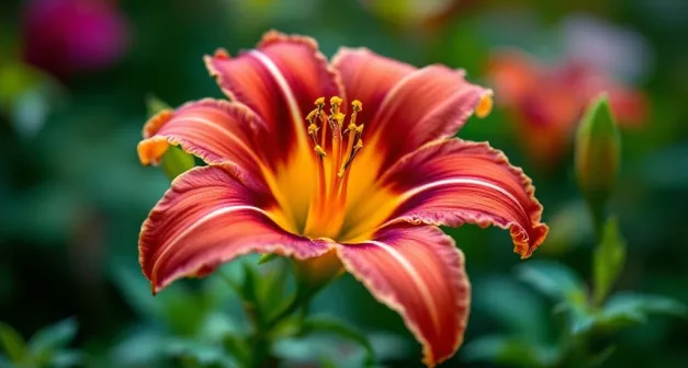 Un arrosage adéquat et une fertilisation équilibrée sont nécessaires pour encourager une floraison continue des hémérocalles. Arrosez profondément mais peu fréquemment pour encourager un enracinement profond. En période de sécheresse, assurez-vous que les plantes reçoivent environ 2,5 cm d'eau par semaine, y compris les précipitations. Évitez de mouiller le feuillage pour réduire le risque de maladies fongiques. Pour la fertilisation, appliquez un engrais équilibré (type 10-10-10) au début du printemps, lorsque la nouvelle croissance commence à apparaître. En été, vous pouvez ajouter un engrais riche en phosphore pour stimuler la floraison. Évitez les engrais à forte teneur en azote qui favorisent la croissance du feuillage au détriment des fleurs. Dans les sols pauvres, un apport de compost ou de fumier bien décomposé peut aider à améliorer la structure et la fertilité. Maintenez une couche de paillis organique de 5 à 7 cm autour de la base des plantes pour conserver l'humidité et réduire la concurrence des mauvaises herbes.