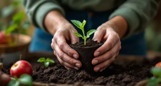 Enrichissez le sol avec du compost bien décomposé au printemps pour apporter les nutriments essentiels à la croissance du pommier.