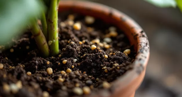 Pour appliquer l'engrais, choisissez un moment où le terreau est légèrement humide. Cela permet une meilleure absorption des nutriments. Versez lentement la solution autour de la base de la plante, en ciblant bien la zone racinaire. Utilisez un arrosoir avec un bec fin pour un contrôle précis du débit et pour éviter de détremper le terreau. Assurez-vous de ne pas verser directement sur les feuilles, car cela peut provoquer des brûlures. Laissez le liquide s'infiltrer jusqu'à ce qu'il commence à s'écouler par les trous de drainage du pot, indiquant que le terreau est bien saturé. Cette méthode garantit que les racines reçoivent une quantité uniforme de nutriments, favorisant une croissance saine.