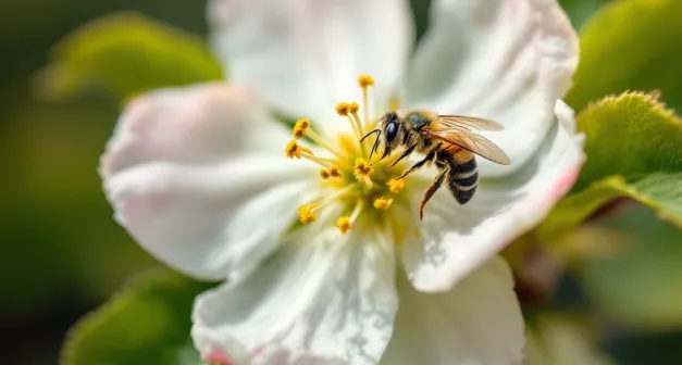 Les arbres fruitiers attirent les pollinisateurs sauvages principalement grâce à leurs fleurs. Ces fleurs produisent du nectar, une solution sucrée riche en énergie, et du pollen, une source de protéines. Les pollinisateurs, tels que les abeilles, les papillons et les bourdons, sont attirés par les couleurs vives et les parfums des fleurs qui servent de signaux biologiques indiquant la disponibilité de nourriture.En visitant les fleurs pour se nourrir, les pollinisateurs collectent du pollen sur leur corps, qu'ils transportent ensuite d'une fleur à l'autre, réalisant ainsi la pollinisation croisée nécessaire à la production de fruits. Chaque espèce d'arbre fruitier a des caractéristiques de floraison spécifiques qui influencent leur attractivité. Par exemple, les pommiers fleurissent généralement entre avril et mai, offrant une abondance de fleurs parfumées qui attirent les abeilles domestiques et sauvages. Les cerisiers, quant à eux, fleurissent en mars-avril, et leurs fleurs blanches sont particulièrement appréciées par les osmies rousses et les bourdons. Ces périodes de floraison varient selon les espèces et les conditions climatiques locales, mais elles jouent un rôle crucial dans la synchronisation avec les cycles de vie des pollinisateurs.