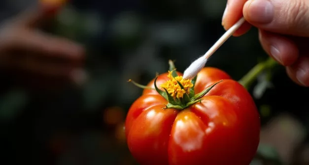 La pollinisation manuelle est une méthode fiable pour contrôler la fécondation des fleurs de tomates. Pour ce faire, munissez-vous de coton-tiges propres. Chaque matin, lorsque les fleurs sont ouvertes et que le pollen est le plus frais, utilisez un coton-tige pour prélever délicatement le pollen des étamines. Ensuite, transférez ce pollen sur le stigmate de la même fleur ou d'une autre fleur du même plant. Cette opération doit être répétée pour chaque plant, en utilisant un coton-tige différent pour chaque variété de tomate pour éviter tout mélange de pollen. Assurez-vous d'effectuer cette opération par temps sec, car l'humidité peut rendre le pollen collant et difficile à manipuler. Conservez les coton-tiges dans un endroit sec entre chaque utilisation. Cette méthode est particulièrement utile pour les variétés de tomates qui ont des stigmates proéminents.