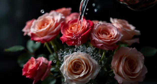 Une fois le vase nettoyé et les tiges taillées, il est temps de préparer l'eau. Remplissez le vase avec de l'eau à température ambiante, autour de 20°C. L'eau tiède est souvent mieux absorbée car elle est moins dense que l'eau froide, facilitant ainsi le processus d'hydratation. Ajoutez un sachet de solution nutritive pour fleurs coupées, souvent fourni par les fleuristes. Ce sachet contient des nutriments essentiels qui aident à prolonger la vie des fleurs. Si vous n'en avez pas, créez une solution maison en mélangeant une cuillère à café de sucre, quelques gouttes de vinaigre blanc et une pincée de bicarbonate de soude dans l'eau. Ces ingrédients aident à équilibrer le pH de l'eau, à inhiber la croissance bactérienne et à fournir des nutriments nécessaires aux roses.