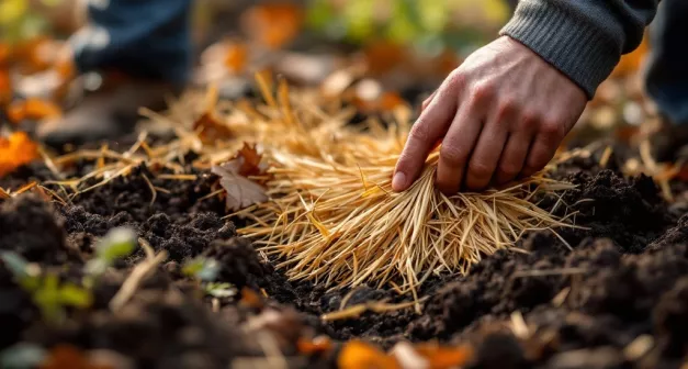 Pour renforcer la protection, vous pouvez utiliser une bâche perméable à l'air pour maintenir le paillis en place et éviter qu'il ne soit emporté par le vent.