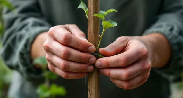 Utilisez des morceaux de tissu doux pour protéger la tige lors de l'attache, évitant ainsi de l'endommager.