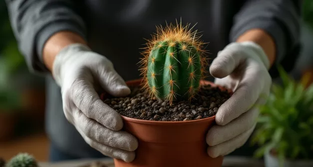 Pour faciliter le retrait du cactus, arrosez légèrement le substrat quelques jours avant pour qu'il soit plus malléable et que les racines se détachent plus facilement.