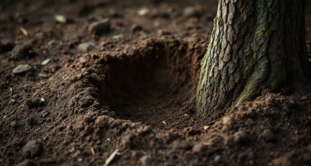 Pour un drainage optimal, assurez-vous que le sol autour de l'arbre est légèrement surélevé pour éviter l'accumulation d'eau autour des racines.