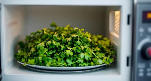 Le micro-ondes est une méthode très rapide pour séchage vos fines herbes. Commencez par laver les herbes sous l'eau froide pour éliminer toute saleté. Assurez-vous qu'il n'y a pas de terre ou d'insectes. Ensuite, séchez-les soigneusement avec un torchon propre ou du papier absorbant. Prenez une grande assiette adaptée au micro-ondes et posez une feuille d'essuie-tout dessus. Étalez les herbes en une seule couche sur l'essuie-tout, en évitant de les superposer pour assurer un séchage homogène. Recouvrez-les d'une deuxième feuille d'essuie-tout. Placez l'assiette au micro-ondes et réglez la puissance au maximum. Chauffez pendant 1 minute. Arrêtez et vérifiez l'état des herbes. Si elles ne sont pas encore croustillantes, continuez par intervalles de 15 à 20 secondes, en surveillant de près pour éviter de les brûler. Les herbes sont prêtes lorsqu'elles se cassent facilement entre vos doigts. Cette méthode est rapide et efficace pour de petites quantités.