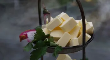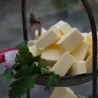 D'autre part, le safran, extrait des stigmates du Crocus sativus, est employé en très petite quantité. Ce dernier est d'abord délayé dans de l'eau chaude, puis filtré à travers un linge avant d'être mélangé à la crème destinée à la fabrication du beurre.