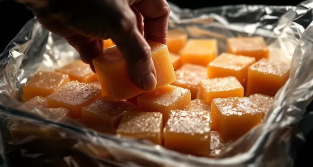 Placez les moules remplis de bouillon dans le congélateur, en veillant à ce qu'ils soient à plat pour éviter les déversements. Laissez-les congeler pendant au moins 12 heures, ou jusqu'à ce qu'ils soient complètement solides. Une fois le bouillon bien congelé, démoulez les cubes en appuyant doucement sur le fond des moules. Transférez-les dans des sacs de congélation en plastique hermétiques, en retirant autant d'air que possible avant de les sceller. Pour ce faire, vous pouvez utiliser une paille pour aspirer l'air restant, ou un appareil de mise sous vide pour une efficacité maximale. Étiquetez chaque sac avec la date de congélation et le type de bouillon pour faciliter la gestion de votre stock. Les cubes de bouillon peuvent être conservés au congélateur pendant 3 à 4 mois, mais pour une fraîcheur optimale, utilisez-les dans les 2 mois.