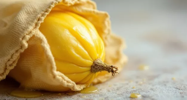 Avec vos tissus enduits de cire d'abeille prêts, il est temps d'emballer vos légumes. Sélectionnez un morceau de tissu adapté à la taille du légume que vous souhaitez conserver. Placez le légume au centre du tissu et repliez les bords pour l'envelopper complètement. Utilisez la chaleur de vos mains pour modeler le tissu autour du légume, ce qui permettra à la cire de s'assouplir légèrement et de créer un joint hermétique. Assurez-vous que l'emballage est bien serré pour minimiser l'exposition à l'air, qui pourrait accélérer la détérioration. Pour les légumes tranchés, veillez à ce que toutes les surfaces exposées soient bien couvertes pour éviter le brunissement. Une fois emballés, placez les légumes dans le réfrigérateur. Les emballages en cire d'abeille sont réutilisables, mais ne doivent pas être utilisés pour les aliments chauds ou gras, car cela peut dégrader la cire.
