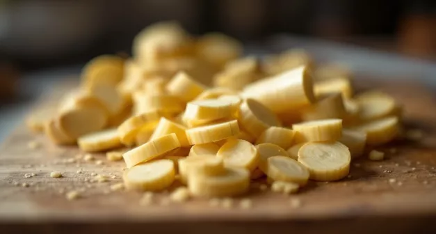Choisissez des racines de bardane fraîches, fermes et non flétries, idéalement de 20 à 30 cm de long pour une cuisson homogène. Commencez par bien les rincer sous l'eau courante froide pour éliminer toute trace de terre et d'impuretés. Utilisez une brosse à légumes à poils doux pour frotter délicatement la surface des racines sans les abîmer. Une fois propres, épluchez-les soigneusement avec un épluche-légumes ou un couteau d'office. Assurez-vous de retirer toute la peau brune et rugueuse, car elle peut être amère et désagréable au goût. Coupez ensuite les racines en rondelles d'environ 5 mm d'épaisseur ou en julienne pour une cuisson uniforme. Pour éviter qu'elles ne s'oxydent et ne brunissent, préparez un bol d'eau froide additionnée de 30 ml de jus de citron et immergez-y les tranches de bardane immédiatement après les avoir coupées.