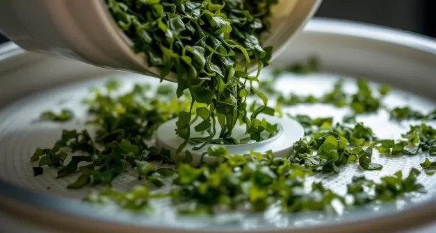 Pour une méthode plus contrôlée, utilisez un déshydrateur alimentaire. Disposez les algues en une seule couche sur les plateaux du déshydrateur, en évitant de les chevaucher. Réglez la température entre 40 et 50 degrés Celsius pour éviter de dénaturer les algues.Le temps de déshydratation varie de 4 à 12 heures selon l'épaisseur et le type d'algue. Contrôlez régulièrement l'état des algues : elles doivent être complètement croustillantes et se casser facilement entre les doigts. Cette méthode est rapide et assure un séchage homogène, ce qui préserve au mieux les propriétés gustatives et nutritionnelles des algues.