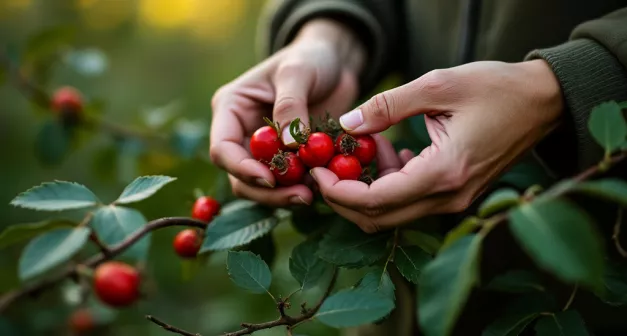 Pour récolter les cynorrhodons, choisissez une journée sèche après les premières gelées d'automne. Cela garantit que les fruits ont atteint une maturité qui adoucit leur texture et concentre les nutriments. Les cynorrhodons se trouvent sur les églantiers, souvent en bordure de forêts ou dans les haies champêtres. Munissez-vous de gants pour protéger vos mains des épines et des poils urticants présents à l'intérieur des fruits. Utilisez un sécateur bien aiguisé pour couper les fruits à la base de leur pédoncule. Préférez les fruits d'un rouge vif et ferme au toucher, signe qu'ils sont bien mûrs. Placez-les délicatement dans un panier en osier pour éviter qu'ils ne s'écrasent. Une fois récoltés, vous pouvez les conserver au réfrigérateur pendant plusieurs jours ou les congeler si vous souhaitez les utiliser plus tard, sans perdre leurs propriétés nutritives.