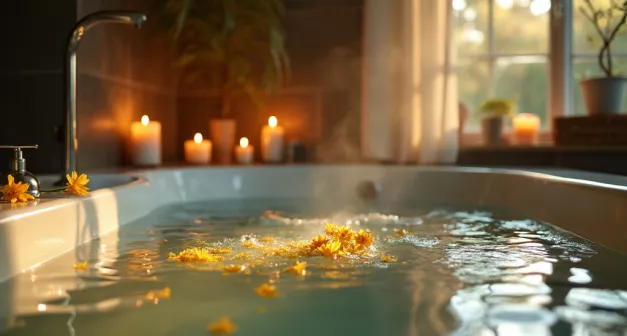 Pour préparer un bain de tilleul relaxant, commencez par faire bouillir 2 litres d'eau dans une grande casserole. Ajoutez-y deux poignées généreuses de fleurs de tilleul séchées, soit environ 50 grammes. Laissez bouillir pendant 10 minutes, puis réduisez à feu doux pour infuser pendant 15 minutes supplémentaires. Pendant ce temps, préparez votre bain en remplissant la baignoire d'eau chaude à une température confortable, autour de 37°C, qui est idéale pour détendre les muscles sans assécher la peau. Filtrez ensuite l'infusion de tilleul à l'aide d'une passoire fine pour retirer les fleurs, et versez lentement la préparation dans l'eau du bain. Remuez légèrement l'eau pour bien répartir l'infusion. Prenez soin d'entrer dans le bain avec précaution, car l'eau peut être glissante. Détendez-vous dans ce bain parfumé pendant environ 20 à 30 minutes. Fermez les yeux, respirez profondément et laissez le tilleul apaiser vos tensions. Ce rituel est particulièrement bénéfique après une journée stressante ou avant le coucher pour faciliter un sommeil profond.