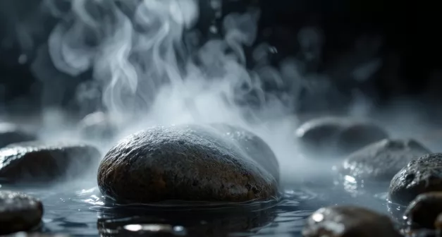 Après avoir chauffé les pierres, préparez un récipient résistant à la chaleur, comme une marmite en fonte ou un grand pot en acier inoxydable. Remplissez-le d'eau jusqu'à 75 % de sa capacité pour laisser de la place aux pierres. Pour une chauffe efficace, l'eau devrait idéalement atteindre 50°C. Placez délicatement les pierres dans l'eau en utilisant des pinces pour éviter de vous brûler. Remuez doucement l'eau avec une cuillère en bois pour aider à répartir la chaleur uniformément. Si l'eau dépasse 60°C, retirez quelques pierres ou laissez refroidir légèrement avant utilisation. Vérifiez la température toutes les 5 minutes pour vous assurer qu'elle reste stable.