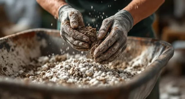 Pour préparer un bon mélange de terre, commencez par tamiser la terre pour éliminer les pierres et les gros morceaux. Vous aurez besoin de 200 litres de terre tamisée. Mélangez cette terre avec 35 kg de chaux hydraulique. La chaux améliore la cohésion et la résistance de la terre. Pour obtenir un mélange homogène, vous pouvez utiliser un motoculteur ou une bétonnière. Ajoutez environ 10 litres d'eau progressivement tout en mélangeant pour que le mélange soit humide mais pas détrempé. Une fois le mélange prêt, laissez-le reposer pendant 24 heures. Ce temps de repos permet à la chaux de commencer à agir et renforce les propriétés mécaniques de la terre. Pendant le repos, couvrez le mélange avec une bâche pour éviter qu’il ne sèche trop rapidement.