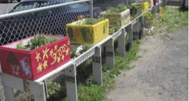 Les bacs en styromousse sont fabriqués à partir de contenants de polystyrène expansé ayant contenus des poissons et des fines herbes. Ils ont un double fond soutenu par un treillis assemblé à « mi-bois » et sont fait de panneaux électoraux réutilisés.