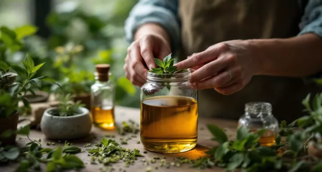 Ce projet vous guide dans la réalisation d'une teinture à base de feuilles de busserole. Cette préparation permet de concentrer les principes actifs de la plante, souvent utilisée pour ses propriétés bénéfiques sur le système urinaire. Le processus implique une macération minutieuse des feuilles dans de l'alcool, suivie d'une filtration pour obtenir un extrait prêt à l'emploi. Cette teinture peut être conservée sur le long terme, offrant ainsi une solution pratique pour profiter des bienfaits de la busserole quand vous en avez besoin.