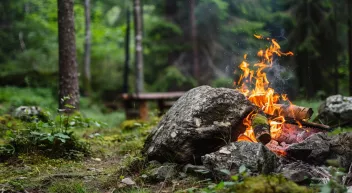L'amadou est crucial pour capturer l'étincelle et démarrer le feu. Le bouleau blanc, avec son écorce qui pèle facilement et brûle intensément, est un excellent choix. Récupère des morceaux d'écorce et rassemble-les en fines lamelles à l'aide de ton couteau. Plus les lamelles sont fines, mieux c'est, car elles s'enflammeront plus facilement.